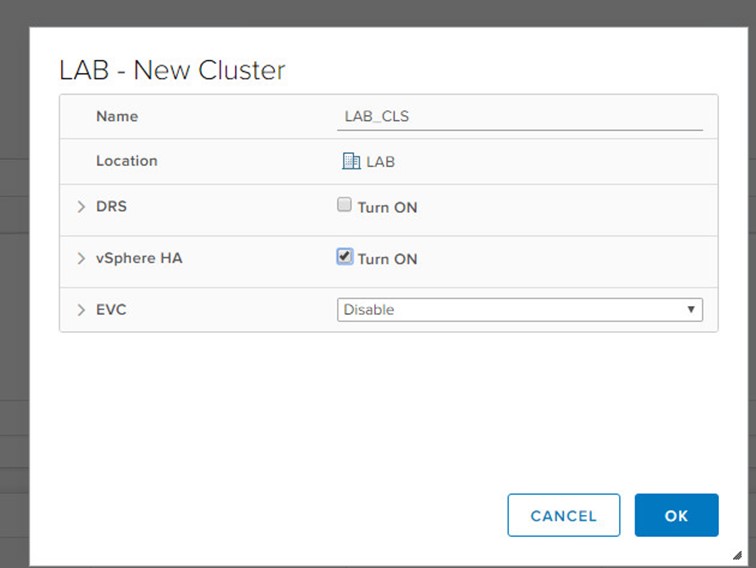 Cluster’a isim verdikten sonra Sadece HA özelliğini açıyorum ve ESXI host bilgilerimizi giriyoruz